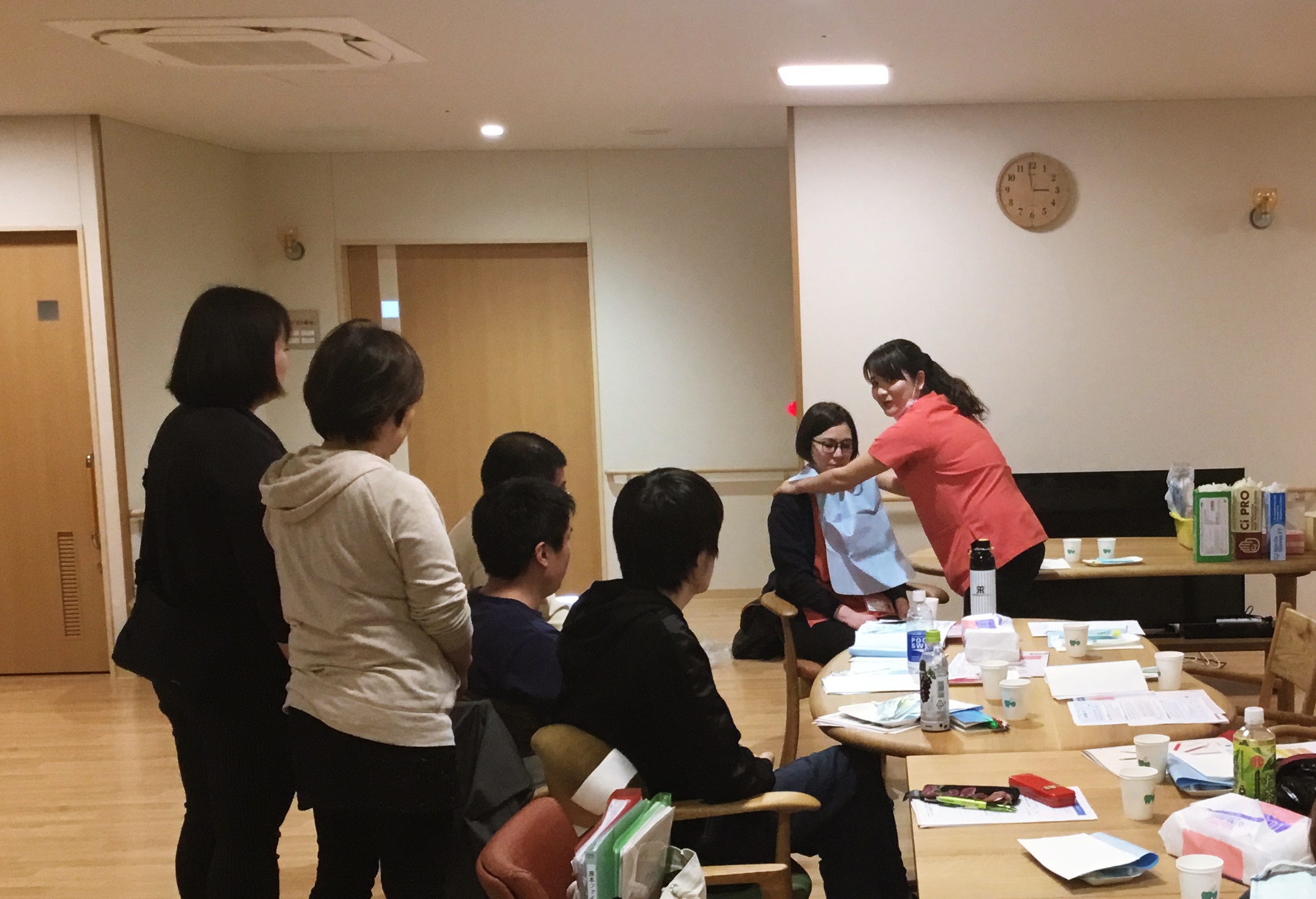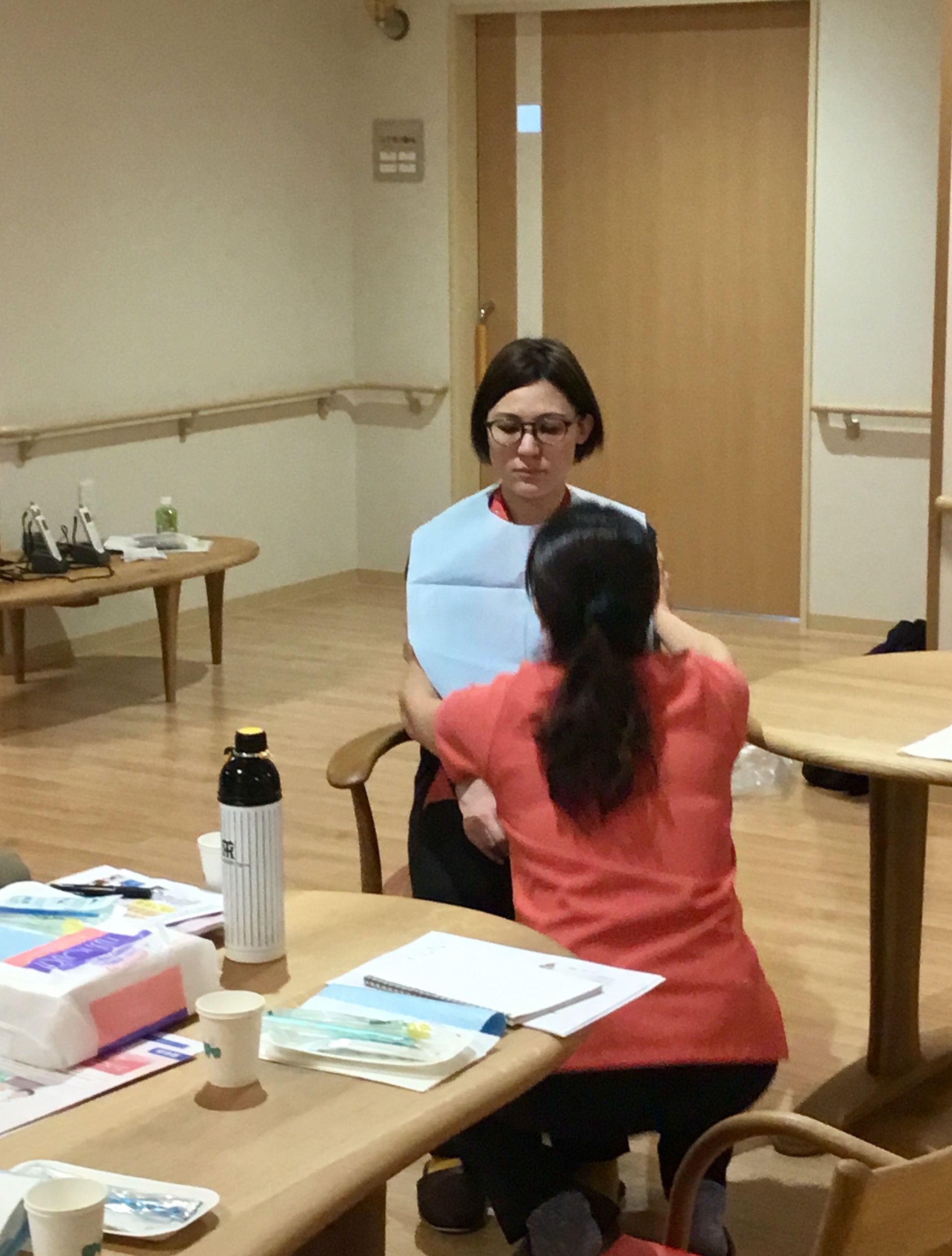 後半は歯科衛生士の米田さん、ニコルさん、竹本さん、松浦さんによる相互実習といった構成でした。