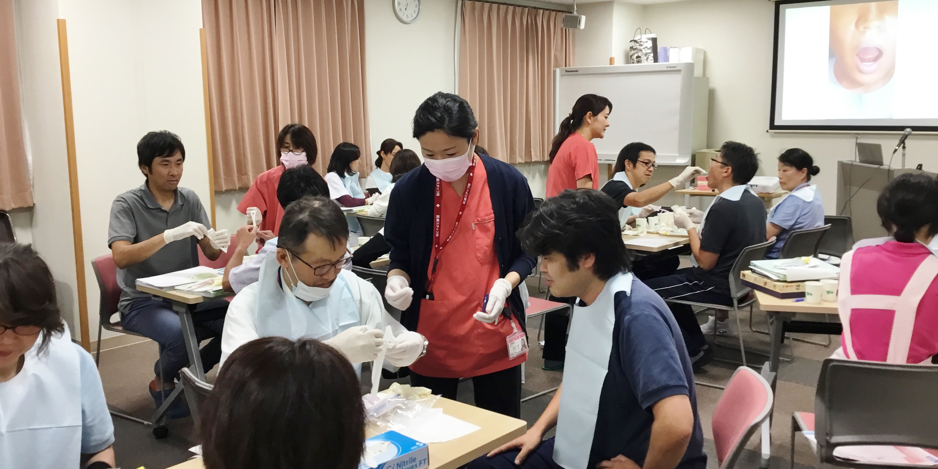 スポンジブラシを用いた相互実習の勉強会を